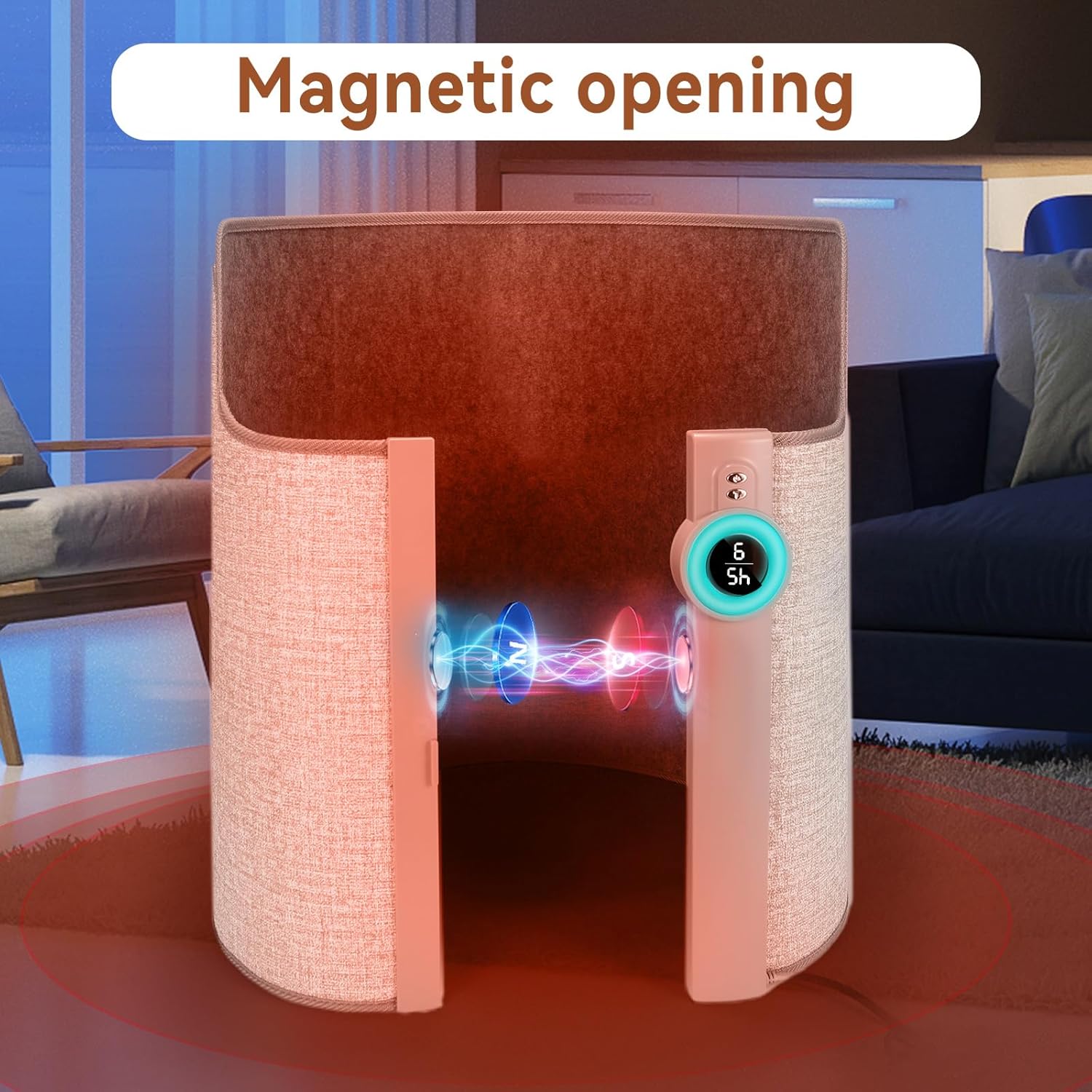 Now upgraded with an 18-inch diameter, the heater offers extra leg room for enhanced comfort — ideal for all body types. The detachable cover has been upgraded to a soft blanket-style wrap for better insulation and easier access. It also includes a heated floor mat, storage bag, and user manual, and folds down to 20 × 4 inches for easy storage.